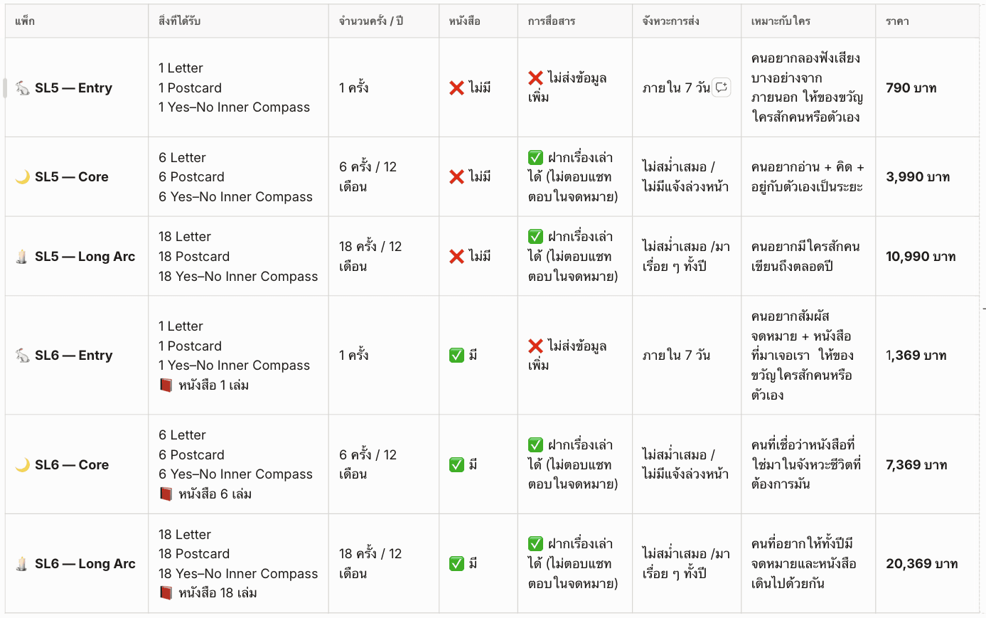 ✉️ SL5 รายละเอียดแต่ละแพ็ก (3 แบบ)