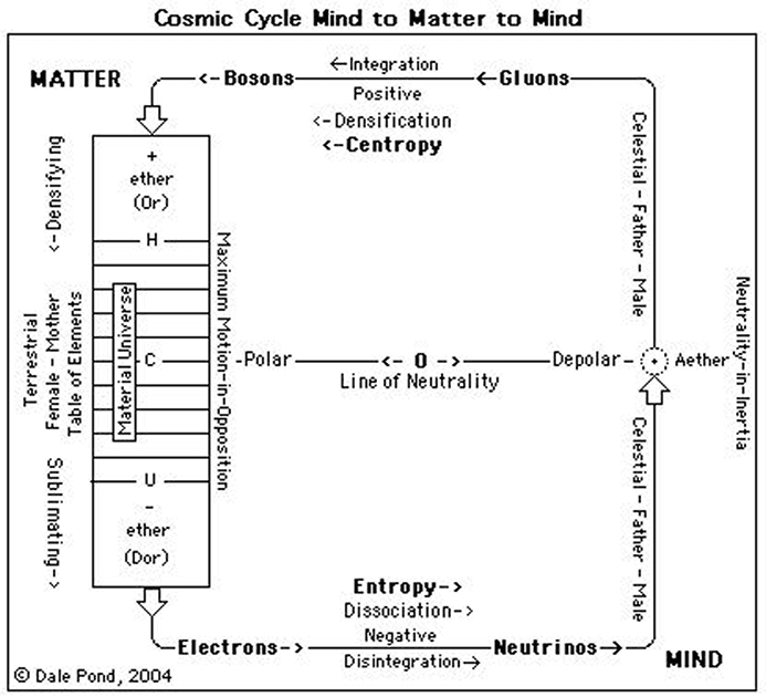จากแผนภาพ Cosmic Cycle Mind to Matter to Mind จะเห็นว่า วงจรนี้มันวิ่งจาก Mind → Matter → Mind มันคือการเดินทางที่ต่อเนื่อง