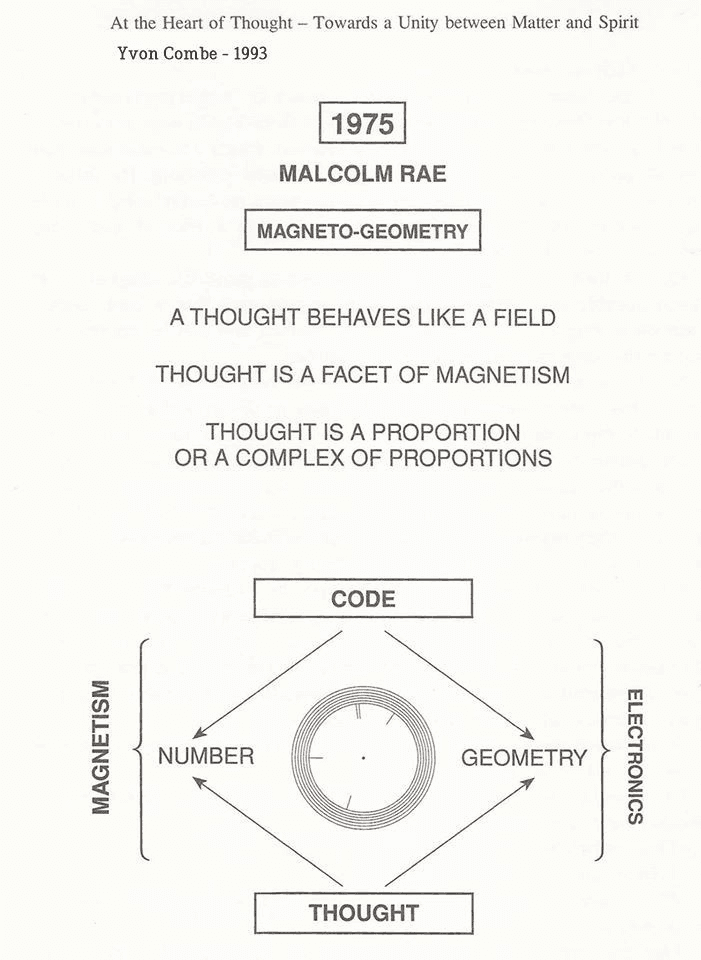 Malcolm Rae ได้วาดวงจรนี้ไว้ Thought (ความคิด) → Number (ตัวเลข) → Geometry (เรขาคณิต) → Code (รหัส)